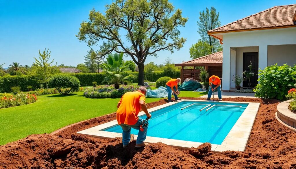 El siguiente paso es la excavación, que debe ser precisa para asegurar que la piscina se asiente correctamente en el suelo. La instalación de una piscina prefabricada es, en muchos casos, más rápida que otros métodos de construcción.
