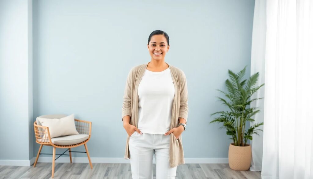 - Ropa: Opta por ropa en tonos oscuros, que contrasten con el fondo blanco.