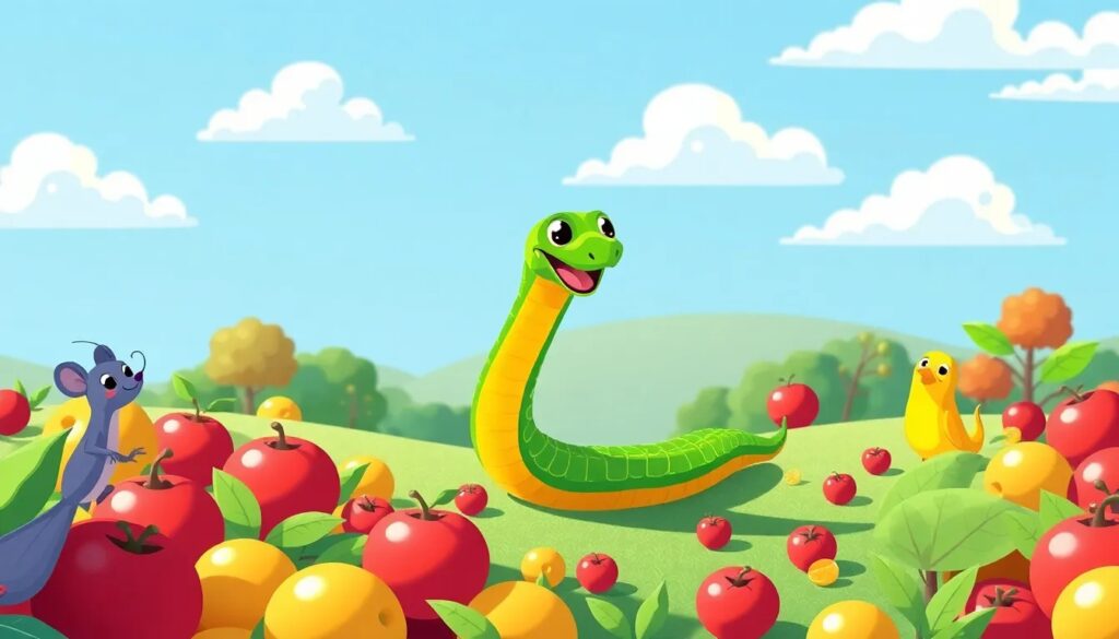 - Comer para crecer: A medida que comes los alimentos que aparecen, tu serpiente se alargará.