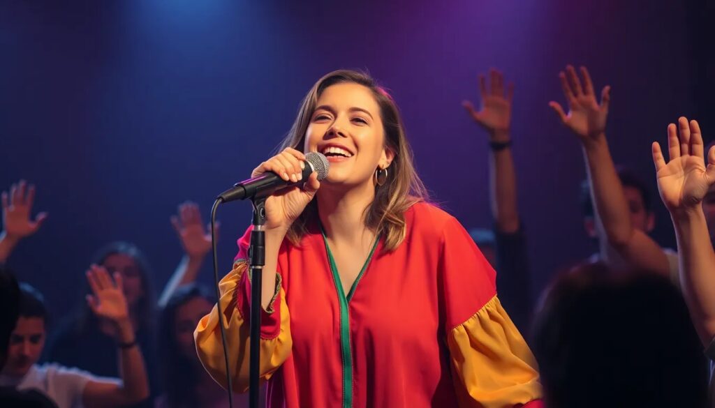 • Imágenes de sus conciertos, mostrando la energía y conexión con el público.