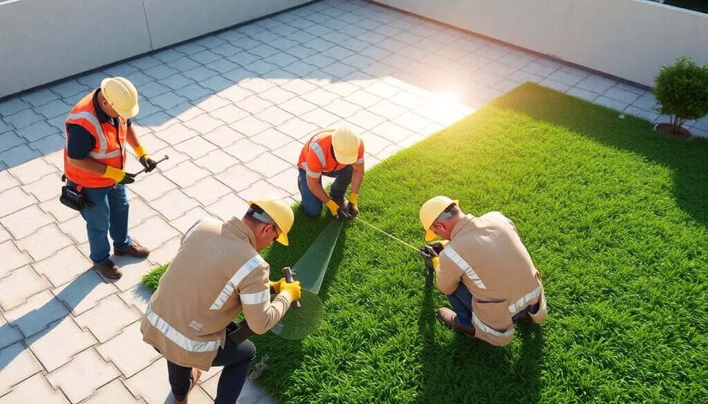 Una vez que tienes las medidas, procede a cortar el césped artificial según las dimensiones requeridas. Recuerda que es recomendable que los paños se coloquen en la misma dirección para garantizar una apariencia uniforme. Además, asegúrate de que los bordes estén bien saneados para facilitar la unión de los rollos.