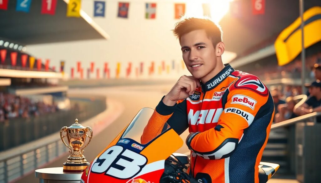 Marc Márquez, nacido el 17 de febrero de 1993 en Cervera, España, es un piloto de MotoGP reconocido mundialmente. Con múltiples campeonatos a su nombre, ha dejado una huella imborrable en el deporte. Su carácter carismático y su estilo audaz han atraído a millones de seguidores.
