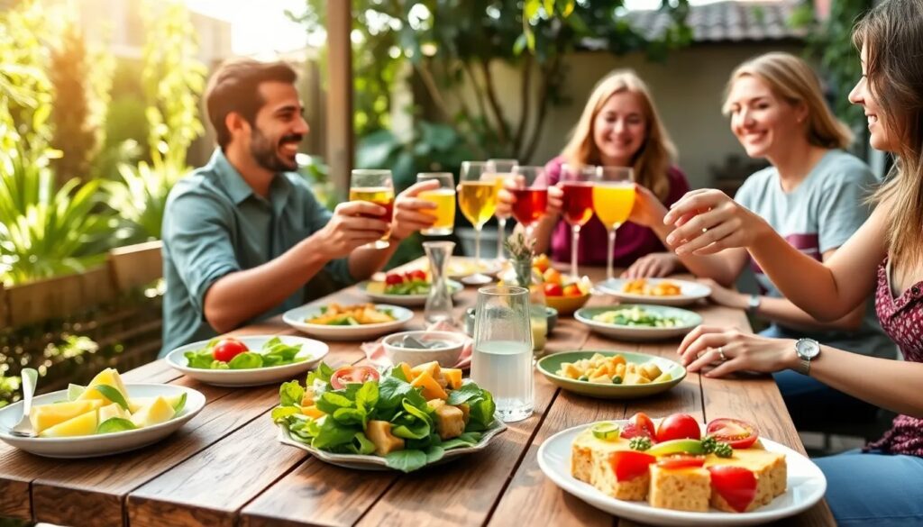 Este tipo de recetas pueden incluir ingredientes saludables como frutas, verduras y granos enteros. Además, son ideales para compartir con amigos, creando una atmósfera de alegría y bienestar que se puede percibir incluso a través de una pantalla.